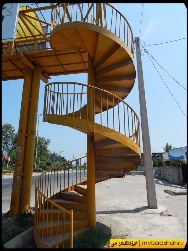 از پله ها بالا می روید ، حدود دو دور و نیم دور خودتون خواهید چرخید تا به قسمت بالای پل برسید، جالب است بدانید در نظام مهندسی ساختمان استفاده از پله گرد با این ارتفاع در ساختمان ممنوع می باشد، چه می شود که به خودشان میرسد این قوانین فراموش می شود.